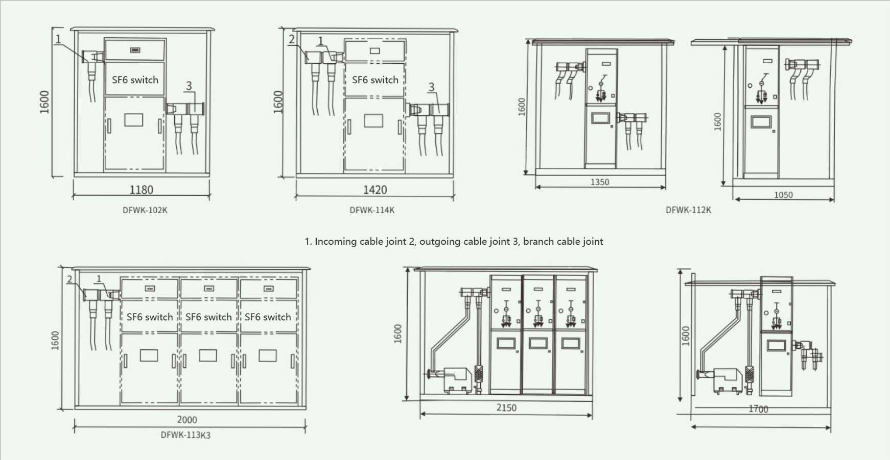 DFWK outdoor switchgear adopts prefabricated live touchable silicone rubber cable heads, fully sealed, fully insulated, maintenance free, and reliable to ensure personal safety; Compact structure, compact and beautiful appearance, stainless steel double-layer box, with a service life of over 20 years; Without affecting the operation of the main network. Widely used in urban power grid renovation, residential communities, commercial centers and other densely populated areas. Implement regional power outage maintenance to reduce the scope of power outages; Can be equipped with one or more SF6 load switches. The wiring methods are flexible and diverse, with a maximum of eight branch lines. Optional lightning arresters, short-circuit fault indicators, current limiting fuses, etc. are available to meet various user requirements.
